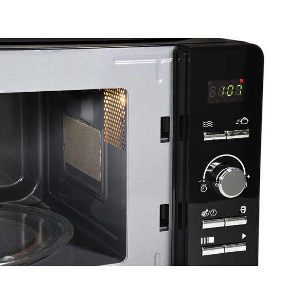 Микроволновая печь с электронным управлением MD2033 и внутренним объемом 20 литров оснащена LED-дисплеем с часами и таймером на 60 минут.