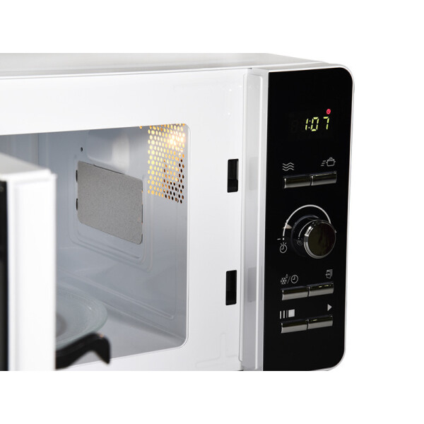 Микроволновая печь с электронным управлением MD2033 и внутренним объемом 20 литров оснащена LED-дисплеем с часами и таймером на 60 минут.