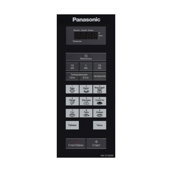 СВЧ Panasonic NN-ST342MZPE обладает стильным современным дизайном и сенсорной панелью управления. Модель оборудована компактным дисплеем, отображающим действующую программу и время до окончания работы выбранного режима. Внутренняя камера, полезный объем которой составляет 25 л, имеет жароустойчивое эмалированное покрытие, неприхотливое в уходе и отличающееся долгим сроком службы. Диаметр поворотной тарелки достигает 28,8 см, что позволит разместить на ней крупную посуду.