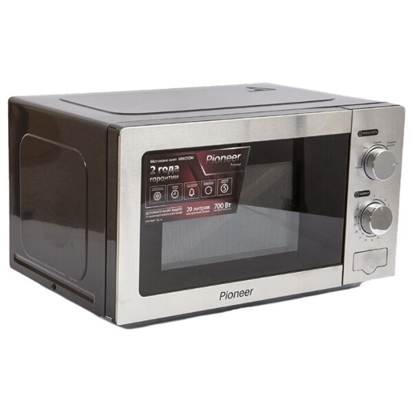 Pioneer MW210M современная, стильная и качественная микроволновая печь. Передняя панель и рамка дверцы выполнены из нержавеющей стали. Усиленный каркас дверцы из высокопрочного стекла обеспечивает дополнительную защиту от микроволнового излучения.