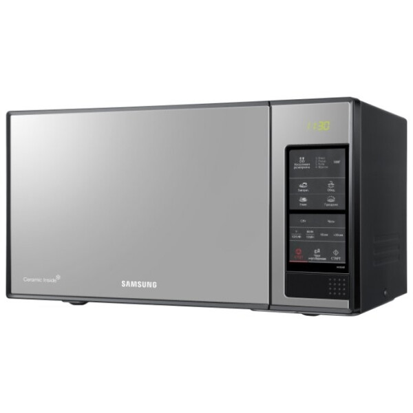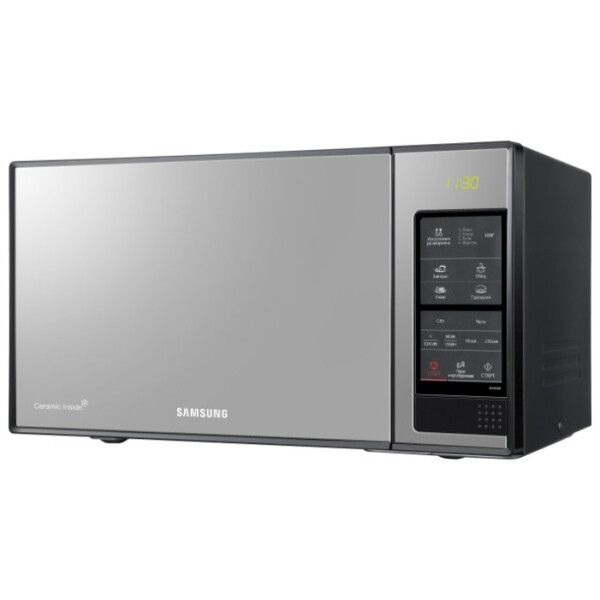 Микроволновая печь Samsung ME83XR – это не только многофункциональное, но и очень стильное устройство. Сенсорная панель управления эффектно сочетается с зеркальным оформлением дверцы. Внутреннее покрытие выполнено из особой биокерамической эмали. Этот материал не только помогает легко бороться с грязью и жиром, но и борется с вредными бактериями. Высокая прочность покрытия позволяет ему быть устойчивым к повреждениям и, как следствие, долгое время оставаться в первозданном виде.