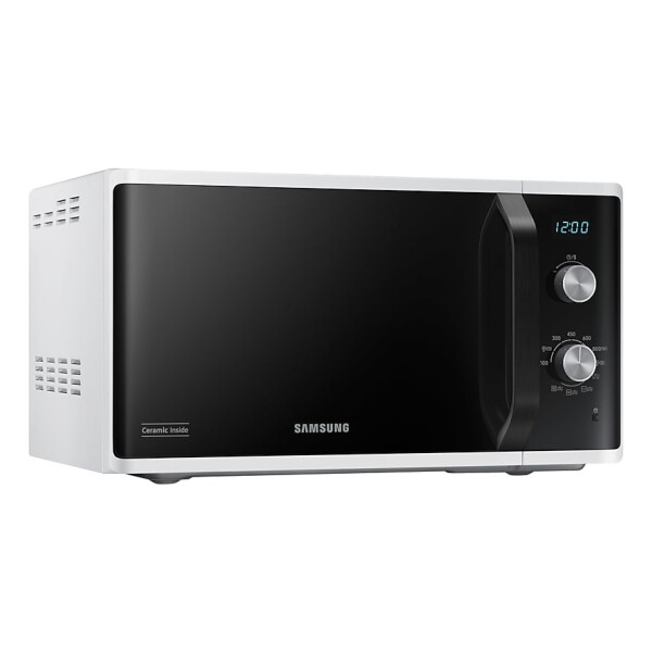Управляйте приготовлением еды быстрее и проще. Два поворотных переключателя позволяют устанавливать время и вес, либо мощность. Вы можете готовить блюда наиболее точно. А простой, элегантный дизайн придает микроволновой печи чистый и стильный вид. Убедитесь в том, что все блюда приготовлены хорошо. Уникальная система тройного распределения микроволн равномерно прогревает рабочую камеру, проникая в блюдо со всех сторон. Благодаря этому блюда приготовлены равномерно.