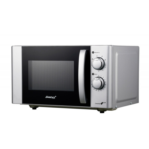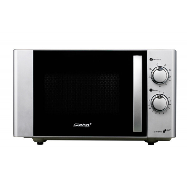 Микроволновая печь Steba MIC 2130 в серебристом корпусе оснащена грилем мощностью 1000 Вт. Также есть опция предварительного прогрева.