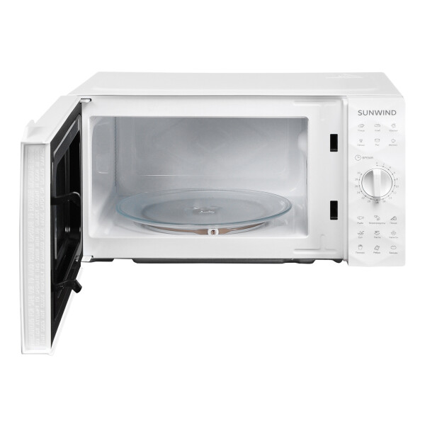 Микроволновая печь SunWind SUN-MW001 самая простая по своей функциональности. Не перегружена лишними возможностями, все аскетично и интуитивно понятно.