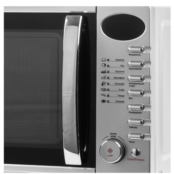 VEKTA TS720ATS - это не только стильная модель микроволновой печи, но и очень практичная и современная. Благодаря тому, что поверхность рабочей камеры покрыта эмалью, ухаживать за её чистотой будет очень легко. Достаточно вместительный объем печи в 20 литров предусматривает размещение 245 мм стеклянной тарелки внутри устройства. Вы можете выбрать необходимый уровень мощности микроволн, которых в данной модели предусмотрено 6. В тот момент, когда завершится время отведенное для выбранной вами программы, вы услышите предупреждающий звуковой сигнал.