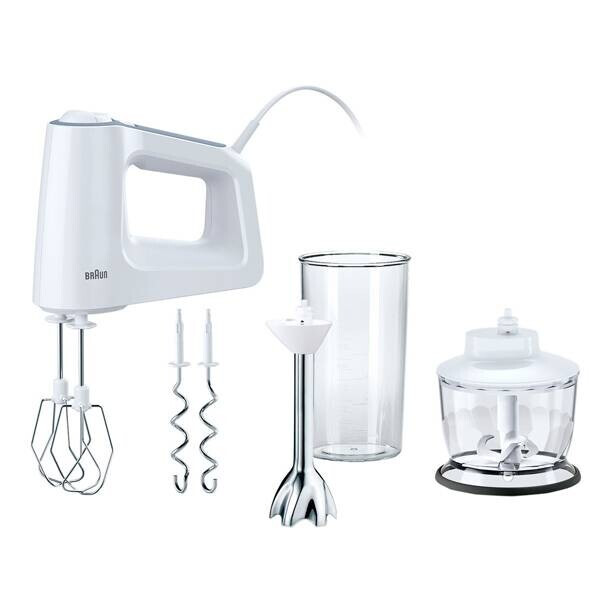 Миксер Braun HM3137WH мощностью 500 Вт с регулируемыми рабочими режимами использует в работе несколько насадок и ряд эффективных дополнительных функций.