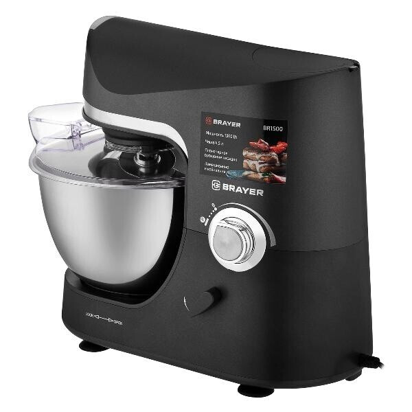 Кухонная машина Brayer BR1500 станет незаменимой помощницей на кухне, помогая смешивать и взбивать ингредиенты. Благодаря высокой мощности прибор справится с продуктами различной консистенции. Устройство оснащено вместительной чашей из нержавеющей стали, которая устойчива к коррозии. Объем миски составляет 4,5 л, ее можно мыть в посудомоечной машине. Максимальный вес теста, которое способно замешать машина, - 4000 г. Чтобы сменить насадку или снять чашу, откиньте верх конструкции, нажав соответствующую кнопку.