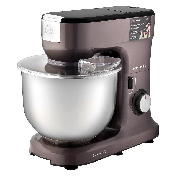 Кухонная машина Brayer BR1501 станет незаменимой помощницей на кухне, помогая смешивать и взбивать ингредиенты. Благодаря высокой мощности прибор справится с продуктами различной консистенции. Устройство оснащено вместительной чашей из нержавеющей стали, которая устойчива к коррозии. Объем миски составляет 8 л, ее можно мыть в посудомоечной машине. Максимальный вес теста, которое способно замешать машина, - 1000 г. Чтобы сменить насадку или снять чашу, откиньте верх конструкции, нажав соответствующую кнопку.