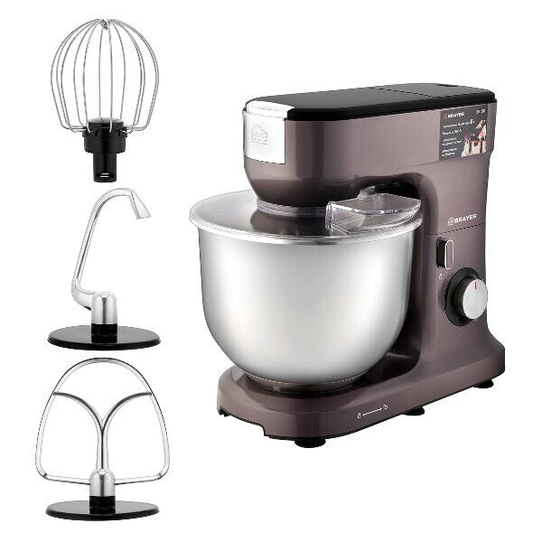 В комплекте с кухонной машиной Brayer BR1501 идут четыре насадки, изготовленные из нержавеющей стали. Венчик подойдет для смешивания соуса или жидкого теста. Для взбивания белков и кремов предназначена лопаточка. Для замешивания густого теста предусмотрена спиральная насадка. Прибор отключится при перегреве, что защитит его от поломки.