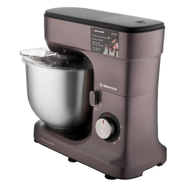 Кухонная машина Brayer BR1501 управляется механическим способом с помощью кругового регулятора. Можно выбрать одну из трех скоростей или импульсный режим. Благодаря планетарному вращению насадок качество взбивания улучшается. Для чаши предусмотрена прозрачная крышка с небольшим вырезом, который позволяет добавлять компоненты в процессе приготовления. Чтобы обеспечить неподвижность прибора во время эксплуатации, производитель снабдил его прорезиненными ножками.