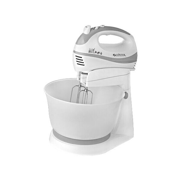 Задача миксера Centek CT-1105 – замешивание теста любой консистенции или плотности для домашней выпечки, а также смешивание сухих ингредиентов. И со своей задачей этот стационарный прибор справляется на отлично. Для ускорения процесса можно использовать турборежим, а всего в устройстве – 5 скоростей и 4 насадки. Насадки отсоединяются посредством удобной кнопки. Вращение чаши Centek CT-1105 способствует наилучшему эффекту от смешивания. Объем чаши прибора – 3.5 л. С резиновыми ножками прибор будет более устойчив на любой поверхности.