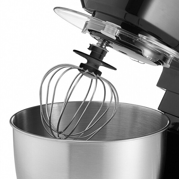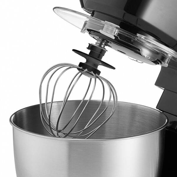 Съемная чашаи зготовлена из нержавеющей стали. Имеется съемная прозрачная крышка с отверстием для добавления продуктов. Контроль наклона миксера. Защита от перегрева.
