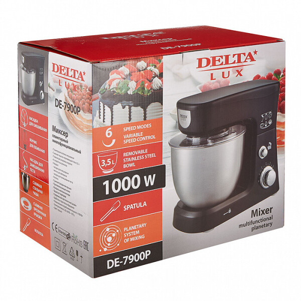 Миксер Delta Lux DE-7900Р черный имеет планетарную систему смешивания: миксер оснащен уникальной технологией «планетарного» движения, когда венчик совершает обороты в одну сторону, а привод в это время движется по кругу в другую сторону, позволяет осуществлять перемешивание по всему объему чаши. Многофункциональный: с его помощью можно взбивать коктейли, замешивать тесто, готовить картофельное пюре и разнообразные кондитерские изделия.