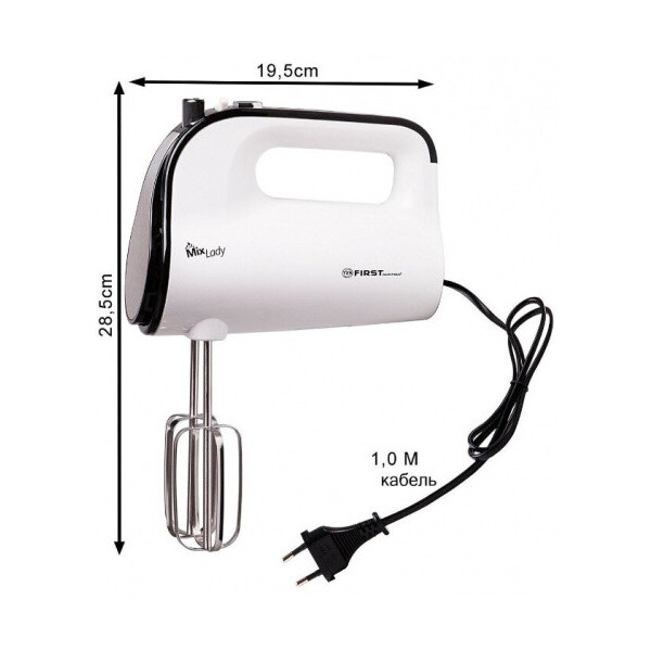 МиксерFIRSTFA-5263-1 с метровым шнуром в разобранном виде занимает минимум места в кухонном шкафу, поэтому место для него найдется в каждом доме. Простота в обращении, надежность и функциональность главные достоинства этого компактного кухонного прибора.