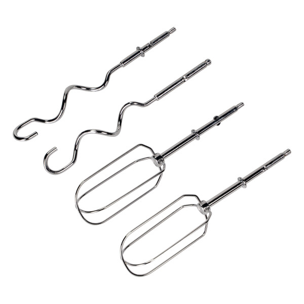 Миксер имеет 2 насадки-венчика и 2 насадки для замешивания теста, а также приятный бонус - книгу рецептов в комплекте.