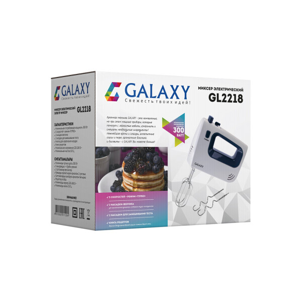 GALAXY GL2218 имеет 5 скоростей и режим Турбо, который позволяет взбивать на максимальных оборотах,