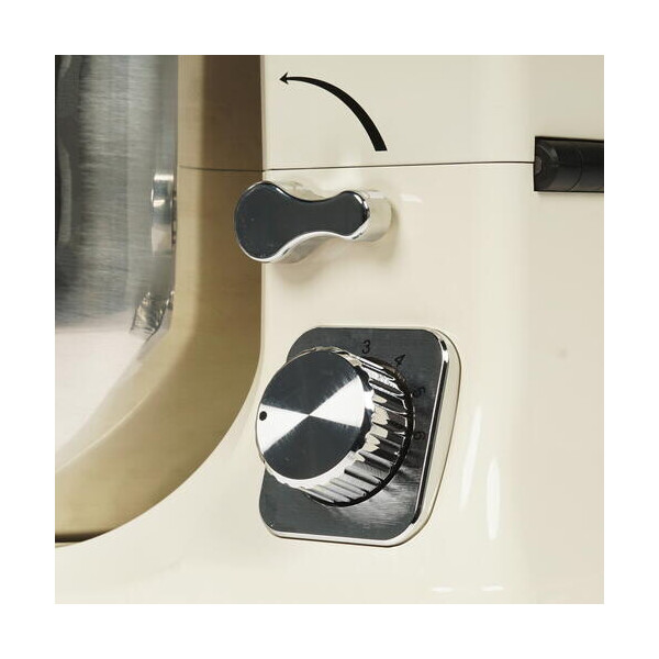 Планетарный миксер Gemlux GL-SM5.5CR произведен из материалов высокого качества. Это обеспечивает прочность и длительный срок эксплуатации устройства. Пошаговая регулировка скоростей осуществляется с помощью поворотного колеса с интуитивно понятными обозначениями. Головная часть устройства при необходимости поднимается посредством специального рычага, что создает удобство при извлечении чаши. На основании есть прорезиненные ножки, которые снижают риск скольжения планетарного миксера по столу.