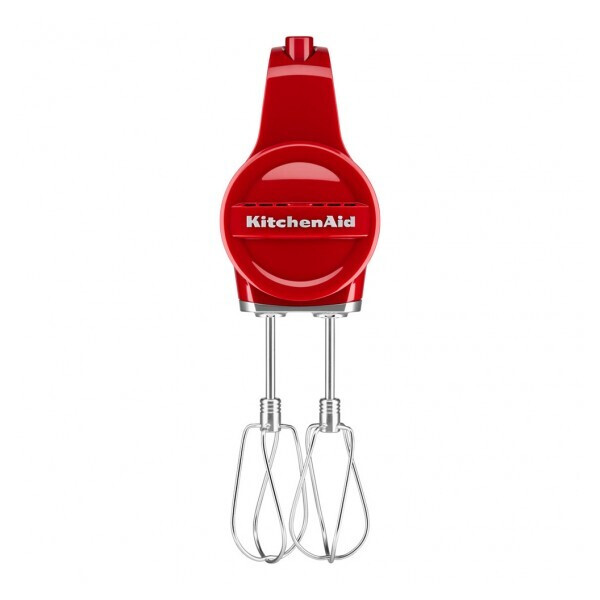 Модель оснащена насадками-венчиками, которые изготовлены из прочного металла. Материал характеризуется стойкостью к изнашиванию и механическому воздействию, что предотвращает деформацию изделий. Для производства корпуса применяется долговечный пластик высокой плотности. Элементы управления миксера KitchenAid 5KHMB732EER расположены на ручке. Индикатор оповещает пользователя о необходимости подзарядки устройства. Конструкция модели предотвращает контакт венчиков со столешницей во время перерыва в работе.
