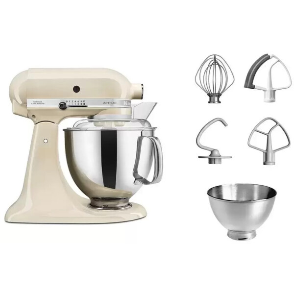 Планетарный миксер Китчен Эйд кремового цвета – выгодное решение для тех, кто часто любит менять дизайн кухни. Чаша объемом 4,8 л способна обеспечить удобный процесс приготовлению блюд на семью из 3-7 человек. Но расширяет возможности кухонной машины дополнительная чаша на 3,3 л, благодаря которой можно готовить 2 кулинарных изыска буквально в один момент.