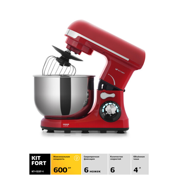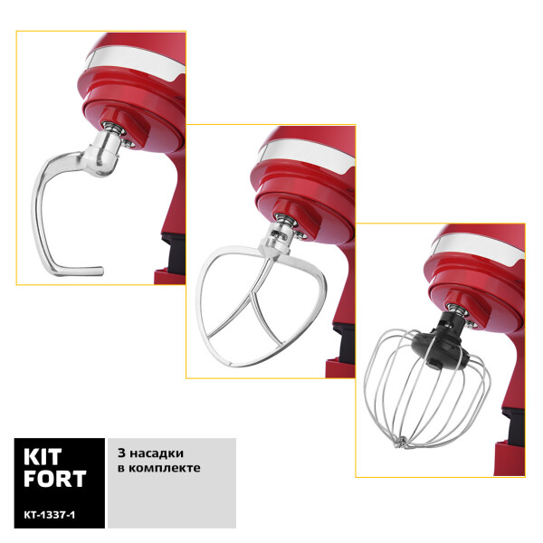 Стационарный миксер KITFORT КТ-1337-1 поможет вам смешать ингредиенты, взбить яичный белок или сливки, приготовить картофельное пюре, соус, крем, мусс, замесить жидкое тесто для блинов и крутое для пельменей и пирогов. Миксер оснащен планетарной системой смешивания: во время работы насадка вращается вокруг своей оси и одновременно движется по окружности по внутреннему объему чаши, обеспечивая идеальное качество смешивания и ровную консистенцию без комков. Миксер позволяет плавно регулировать скорость от минимума до максимума. Импульсный режим служит для кратковременного включения миксера на максимальную скорость. При включении миксера скорость вращения увеличивается постепенно, чтобы предотвратить разбрызгивание ингредиентов.