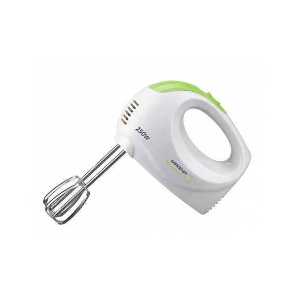 Легкий. Компактный в хранении. Есть два варианта насадок. Насадки легко вынимаются из миксера для мытья (механизм-защелка). При использовании венчиков миксер энергично взбивает легкое тесто (блинное, безе и т. п.) или крем, а насадки-крюки справляется с жидким тестом в небольших объемах.