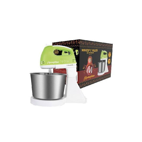 Миксер Матрёна MA-015 подходит для смешивания и взбивания. 7 скоростных режимов. Венчики для взбивания. Металлическая чаша объемом 2 л. Прорезиненные ножки. Мощность 150 Вт.