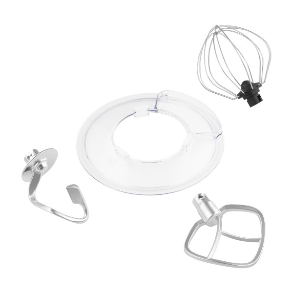 Чаша большой вместимости. Миксер оборудован вместительной чашей объемом 6,5 литров, а надежное крепление к основанию обеспечит высокую безопасность при работе с устройством. Дополнительный комфорт гарантирует входящий в комплект съемный обод для защиты от брызг с желобом для добавления ингредиентов.