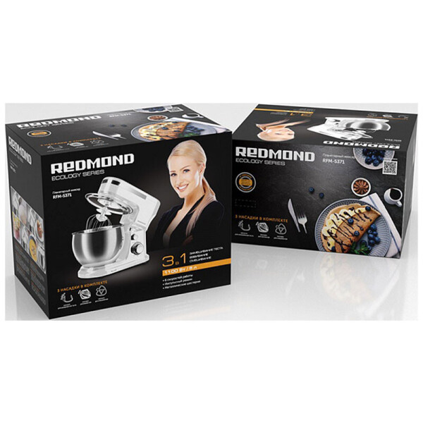 Планетарный миксер RFM-5371с набором сменных насадок быстро и эффективно выполняет различные кулинарные задачи: взбивает яйца и сливки, смешивает соус и кондитерскую глазурь, а также замешивает разные виды теста.