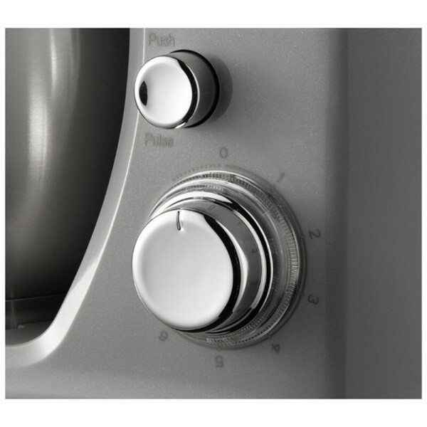 Чаша миксера выполнена из прочного металла и вмещает 5 л. Через специальное отверстие в крышке удобно добавлять ингредиенты, не приостанавливая работу прибора и не опасаясь брызг.