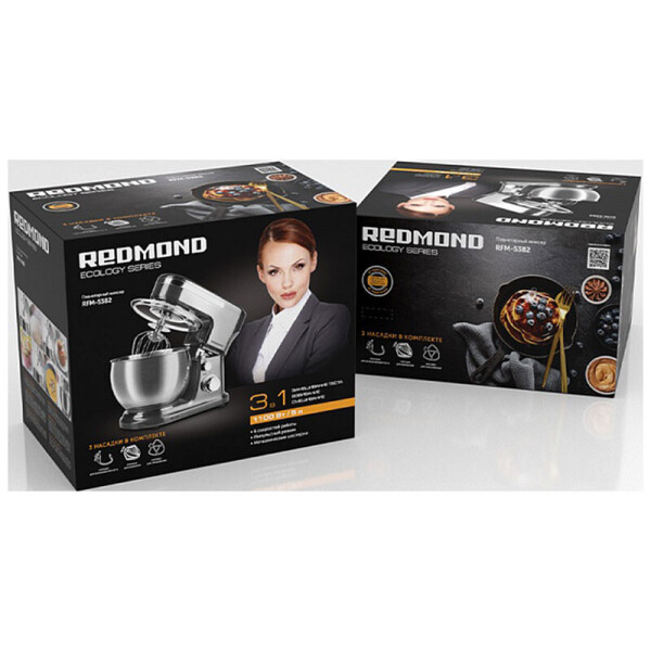Планетарный миксер RFM-5382 устройство 3 в 1, оснащенное набором из трех сменных насадок. С его помощью вы быстро и тщательно смешаете ингредиенты для крем-супов, соусов, выпечки и десертов. Шестерни миксера изготовлены из металла, отличаются высокой прочностью и обеспечивают более длительный срок службы по сравнению с пластиковыми аналогами.