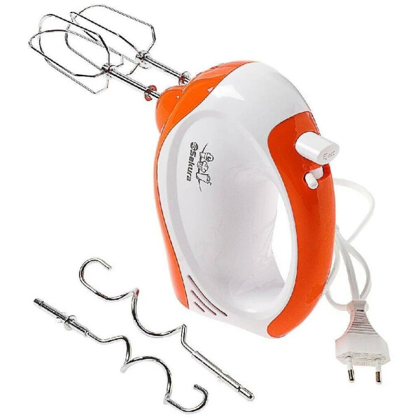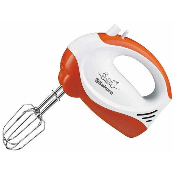 Миксер Sakura SA-6311A оптимален для эксплуатации в бытовых условиях. Устройство имеет пять скоростных режимов, что позволяет выбрать оптимальную интенсивность в зависимости от вида ингредиентов и консистенции состава. Идет в комплекте с четырьмя насадками (два венчика и два крюка для теста). Они легко снимаются с помощью кнопки. Скорости переключаются с помощью рычага на ручке.