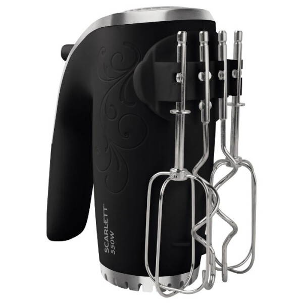 Scarlett SC-HM40S09 - компактный и надежный ручной миксер, имеющий необычный дизайн. Прибор привлекает внимание своим небольшим весом и скромными размерами, им удобно пользоваться в течение долгого времени – ваша рука не устанет. Эту модель легко хранить, она не займет много места в вашем шкафу. Регуляторы переключения скоростей расположены на рукоятке устройства: вы можете переключать режимы, не прерывая процесса работы.