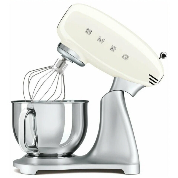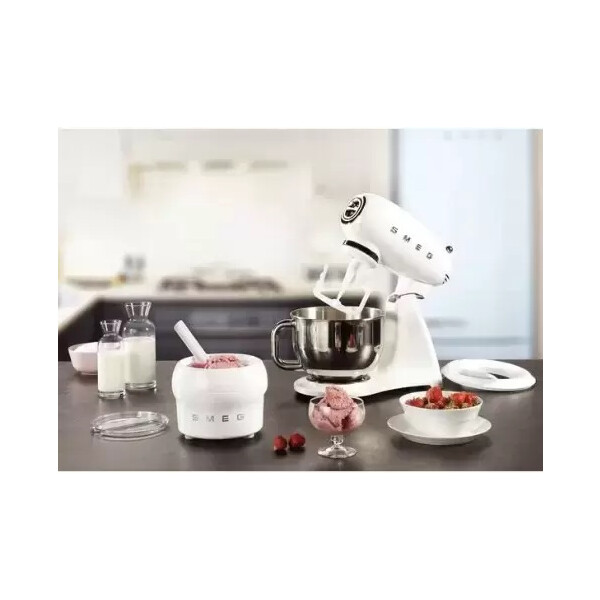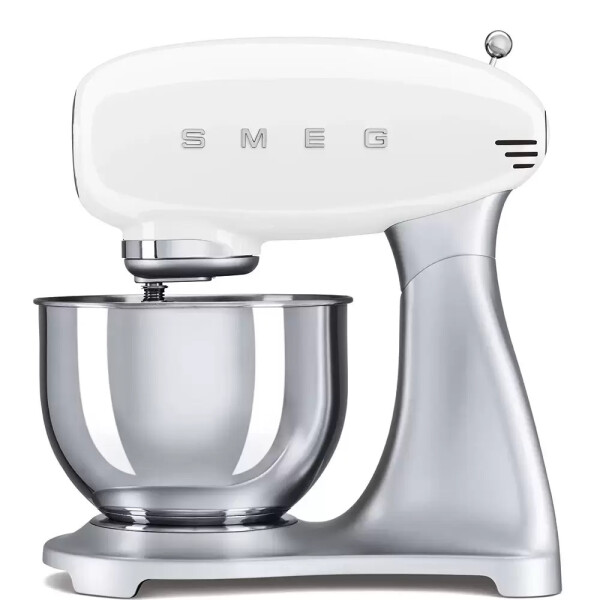 Планетарный миксер SMEG SMF02WHEU выполнен корпусе из литого алюминия имеет мощность 800 Вт. В комплект входят различные насадки, с помощью которых вы с легкостью сможете приготовить тесто для хлеба и пиццы, для яичной пасты, для десертов, взбитые сливки и многое другое.