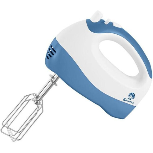 Прибор оснащен 5-ю скоростями и функцией “турбо” приводящей устройство в режим повышенной мощности. Для удобства отсоединения насадок миксера, на корпусе предусмотрена специальная кнопка. Миксер комплектуется насадками: 2 металлических венчика для взбивания, 2 насадки для замешивания теста.