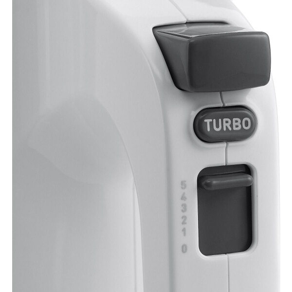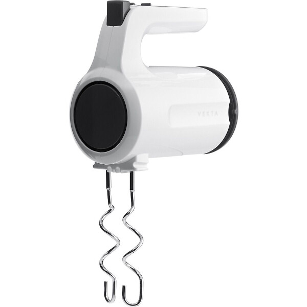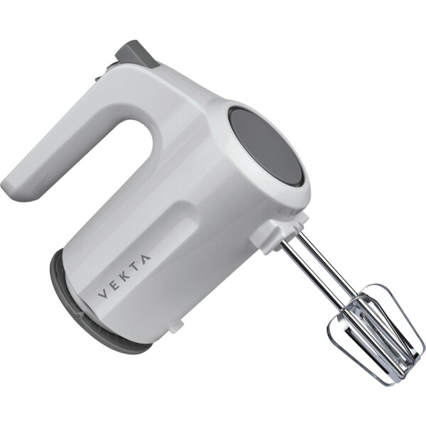 HMP-0201 Миксер Белый/Серый Мощность 200 Вт, 5 скоростей, турборежим, 4 насадки - 2 венчика для взбивания, 2 крюка для замешивания, шнур - 1 м., материал -пластик, цвет белый / серый. Приспособление для хранения шнура и насадок, кнопка для отсоединения насадок.
