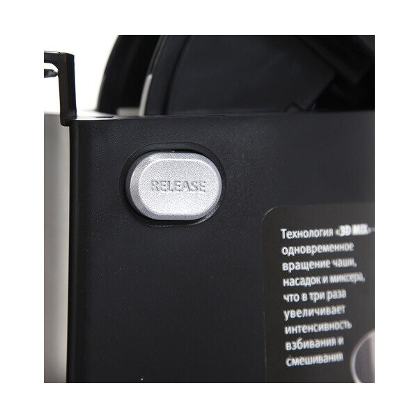Vitek VT-1415 BK Незаменимое на кухне устройство превратится в настоящего помощника, когда Вам понадобится помощь в быстром смешивании продуктов для приготовления блюд. В модели VT-1415 BK используется уникальная технология «3D Mix», которая предусматривает одновременное вращение чаши, насадок и миксера, что в три раза увеличивает интенсивность взбивания и смешивания продуктов.