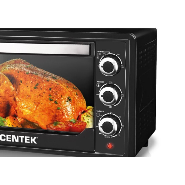 Электрическая печь Centek CT-1530-36 имеет небольшие размеры корпуса, но большой внутренний объем в 36 литра. Она займет достойное место как на кухне в обычной квартире или в частном доме. Регулировка температуры, таймер со звуковым сигналом, четыре режима работы нагревательных элементов – все это позволяет данной компактной модели с успехом заменить традиционную духовку. Решетка, противень и ручка для противня в комплекте делают использование печи удобным и простым, а прозрачная дверца из термостойкого стекла позволяет всегда контролировать процесс приготовления блюда.