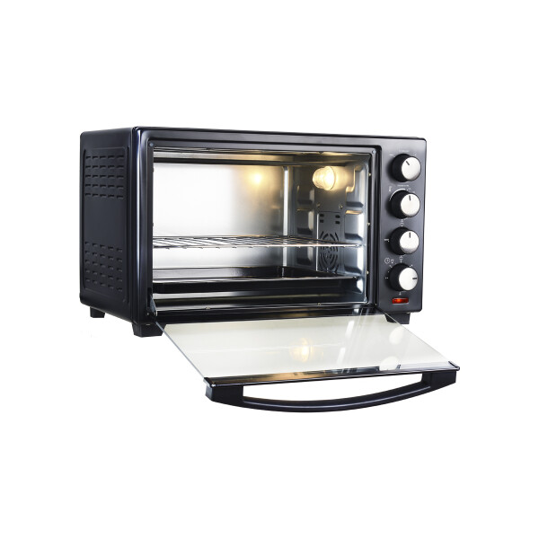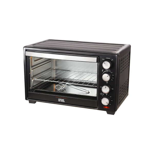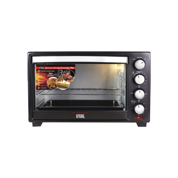 Электрическая многофункциональная мини-печь GFO-30B Convection Plus выполнена из нержавеющего металла в черном лаконичном дизайне.
