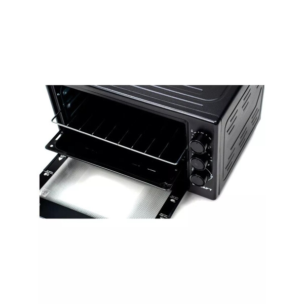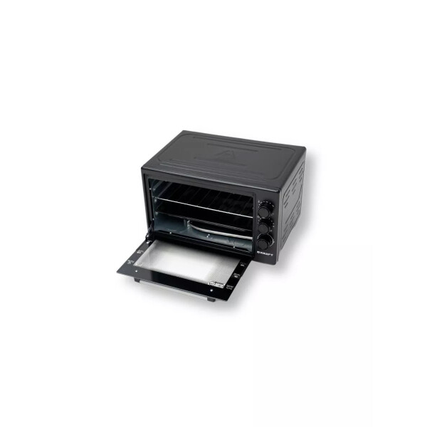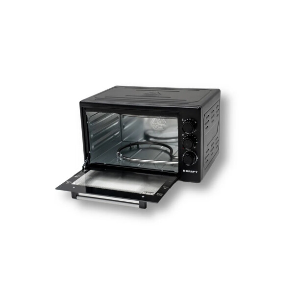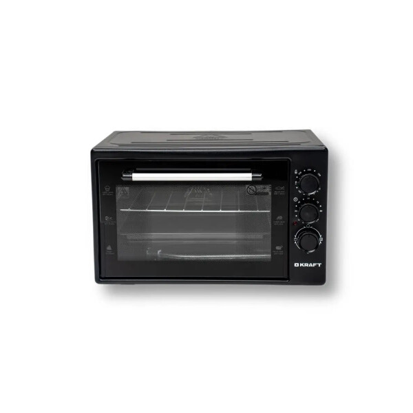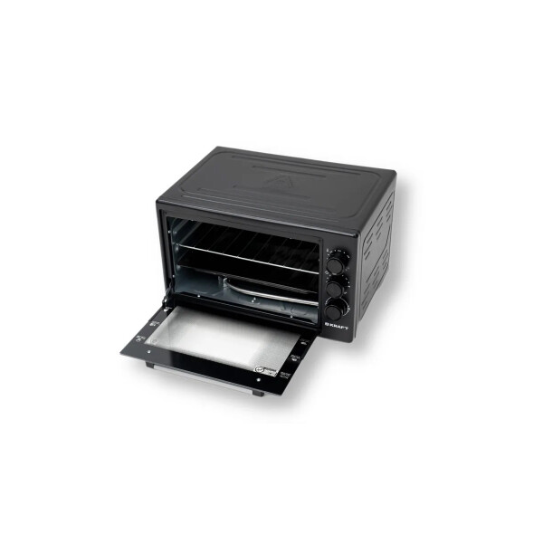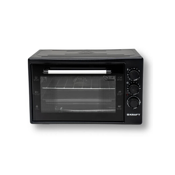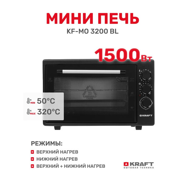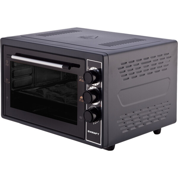 Электропечь KRAFT KF-MO 3200 BL объемом 32 л дополнена поворотными переключателями, при помощи которых вы сможете установить необходимые температурные показатели от 50 до 320 градусов.