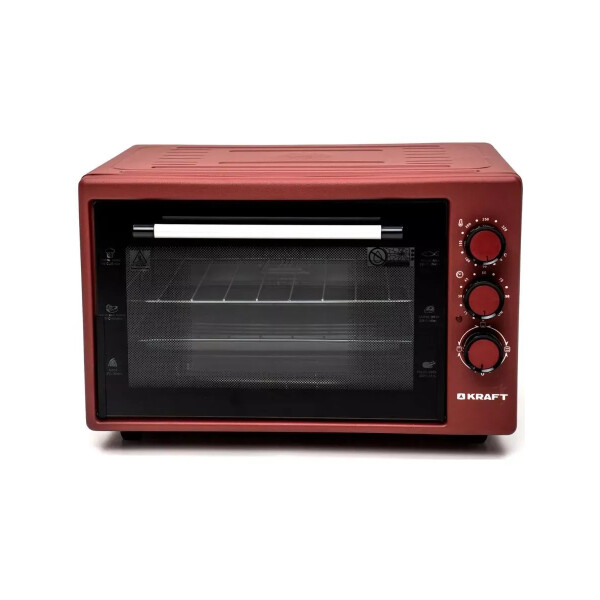 Электропечь KRAFT KF-MO 3200 R объемом 32 л дополнена поворотными переключателями, при помощи которых вы сможете установить необходимые температурные показатели от 50 до 320 градусов. Комплектация включает в себя 2 противня, которые незаменимы для реализации любой кулинарной задумки.