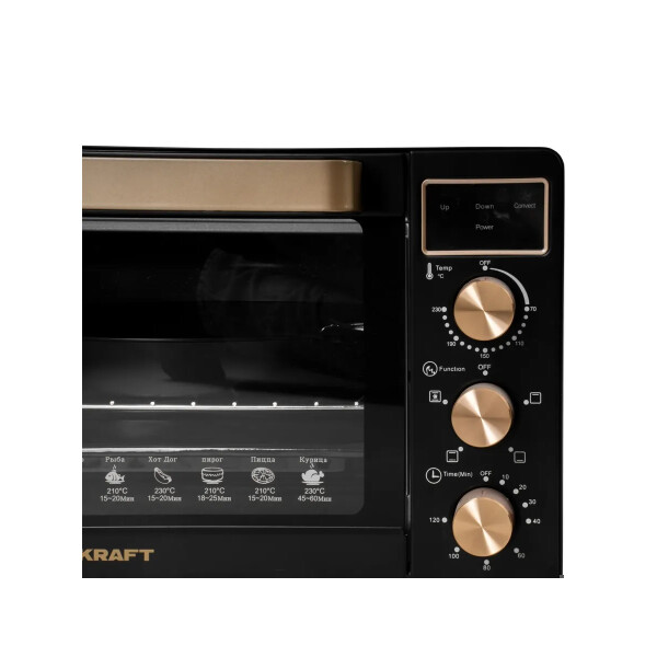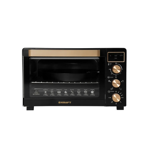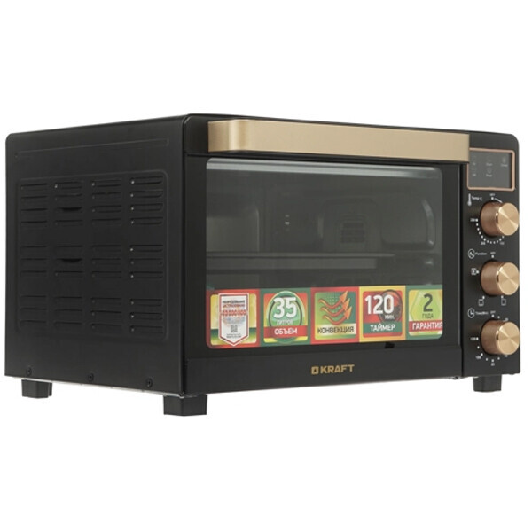 Электропечь Kraft KF-MO3506KGLB эта модель станет незаменимой помощницей на вашей кухне. Ее объем составляет 35 литров, а мощность 1500 Вт. Максимальная температура, которую позволяет настроить эта модель довольно высокая 230. Температурный режим регулируется вручную, благодаря чему вы можете выбрать подходящий именно для вас. Таймер прибора предназначен для того, чтобы вы точно знали, когда будет готово блюдо.