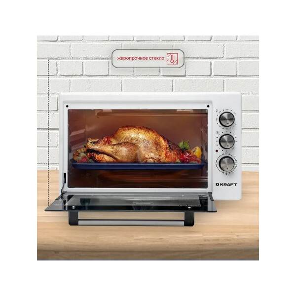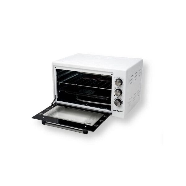 Мини-печь Kraft KF-MO 3800W - надежный и качественный помощник на вашей кухне. Мини-печь одна из важных деталей в процессе приготовления вкусной и здоровой пищи! Стильная, вместительная и компактная, она с легкостью впишится в атмосферу любой кухни и приятно удивит вас своими возможностями. Kraft KF-MO 3800W оснащена верхним и нижним ТЭНом, а также решеткой для гриля и противнем для запекания. Для удобства и безопасности во время эксплуатации данной модели, ее снабдили таймером. Мини-печь Kraft KF-MO 3800W - это гарант безупречности на вашей кухне!