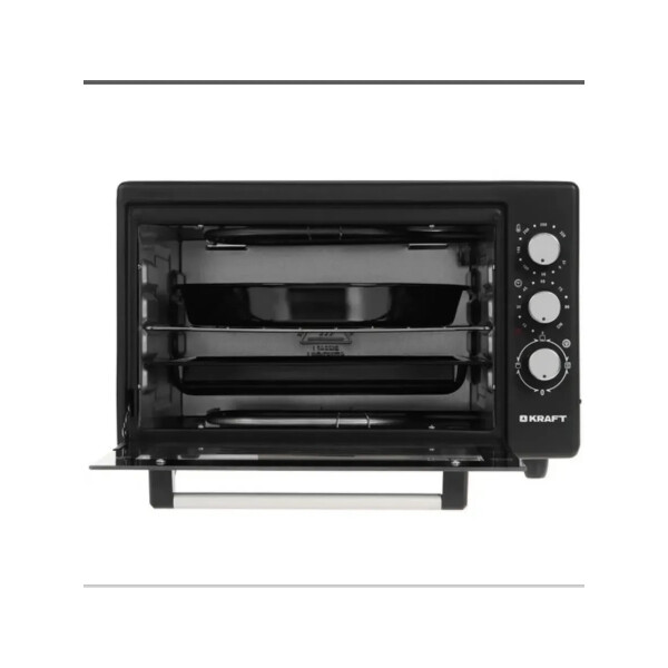 Электропечь Kraft KF-MO3801BL – эта модель станет незаменимой помощницей на вашей кухне. Ее объем составляет 38 литров, а мощность 1500 Вт. Максимальная температура, которую позволяет настроить эта модель довольно высокая — 320º. Температурный режим регулируется вручную, благодаря чему вы можете выбрать подходящий именно для вас. Таймер прибора предназначен для того, чтобы вы точно знали, когда будет готово блюдо.