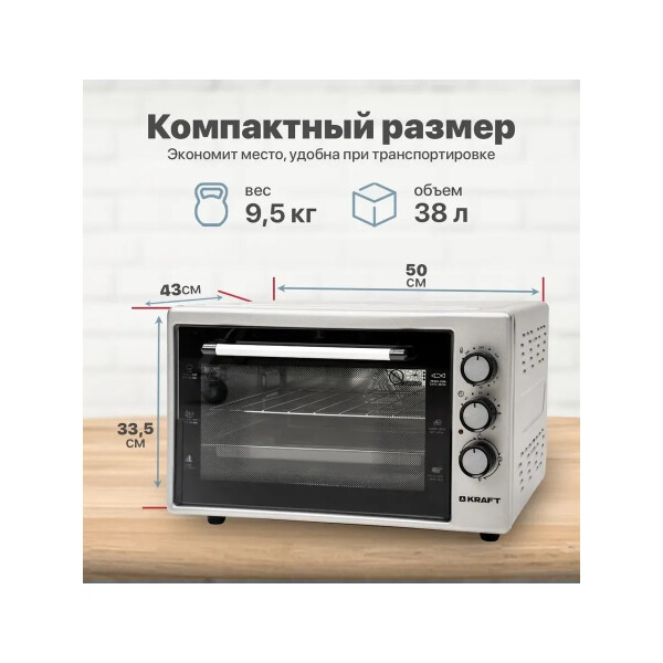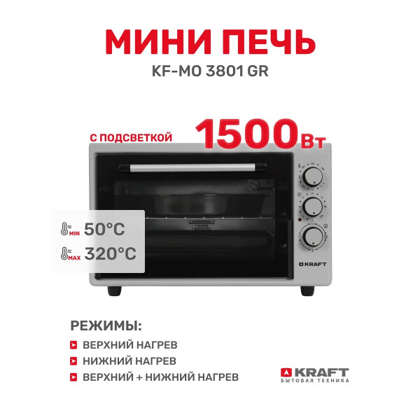 Мини-печь KRAFT KF-MO 3801 GR станет отличным помощником на вашей кухне.