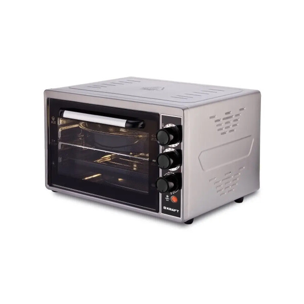 Модель Kraft KF-MO 3803 KGR оснащена шестью рабочими режимами, системой автоотключения и конвекцией. Комфортной работе способствует наличие приятной подсветки и ненагревающейся рукоятки. Электропечь дополняется таймером на 1.5 часа и поставляется с решеткой и двумя противнями.