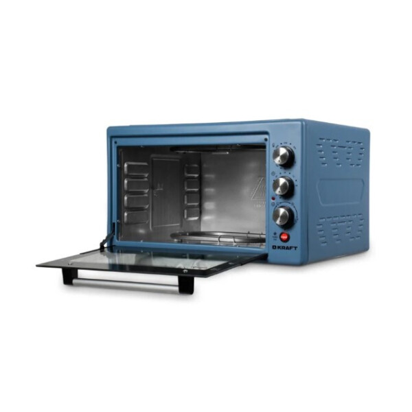 Электрическая духовка Kraft KF-MO3804RKBL в черном цвете и с функцией конвекции. Объем духовки 38 литров. В комплект входят прямоугольный противень для выпечки, круглый противень, решетка, вертел. Мощность 1500 Вт обеспечивает быстрый нагрев.