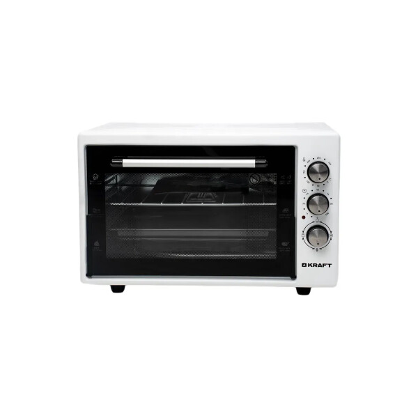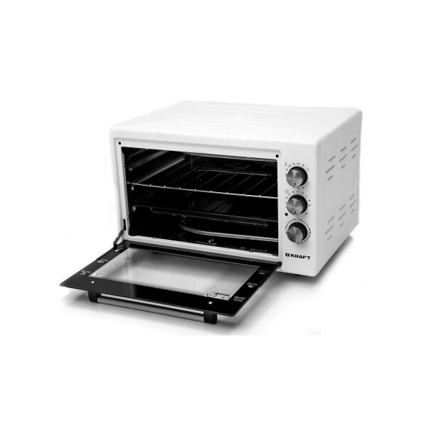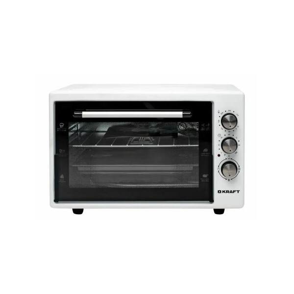 Электрическая духовка Kraft KF-MO4500W в белом цвете отличается удобством в использовании, компактностью и функциональностью.