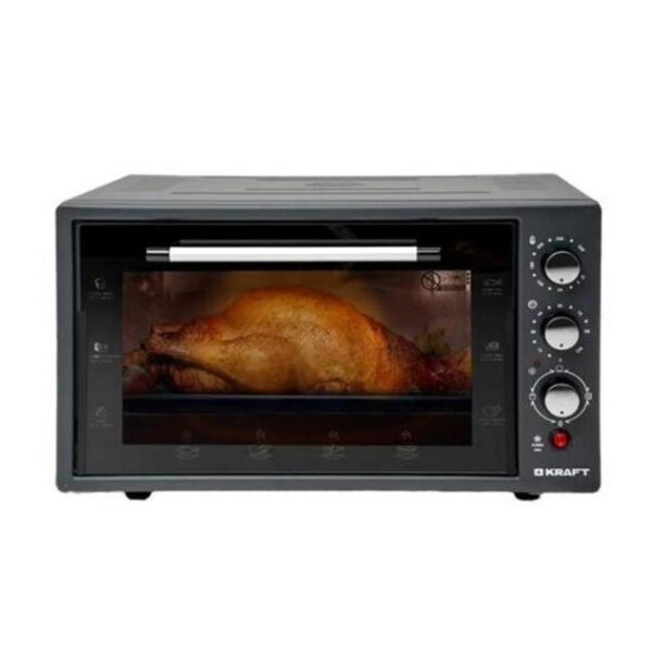 Таймер обратного отсчета гарантирует автоматическое отключение печи по завершению установленного времени. Из особенностей Kraft отмечаются режим конвекции и подсветка. В комплекте предусмотрен эмалированный противень и хромированная решетка.