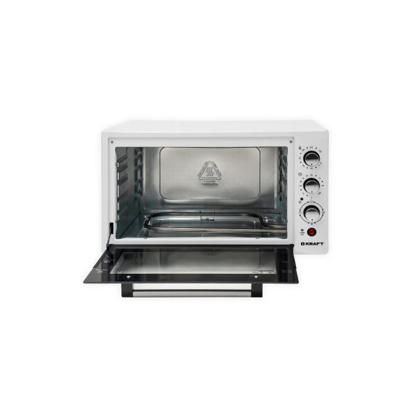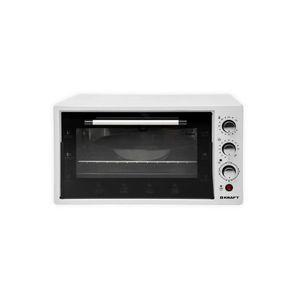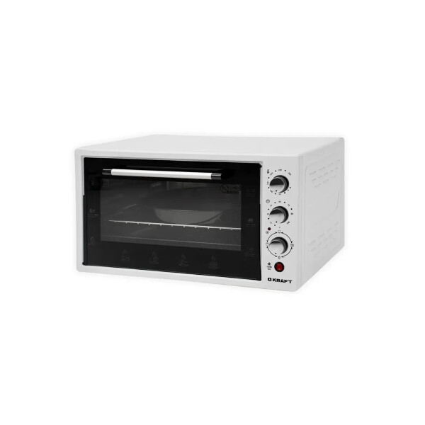 Мини-печь Kraft KF-MO 4506 W оснащена решеткой и противнем для выпечки прямоугольной и круглой формы. Поддерживает 6 режимов работы и таймер отключения до 90м. Длина шнура составляет 1.2м.