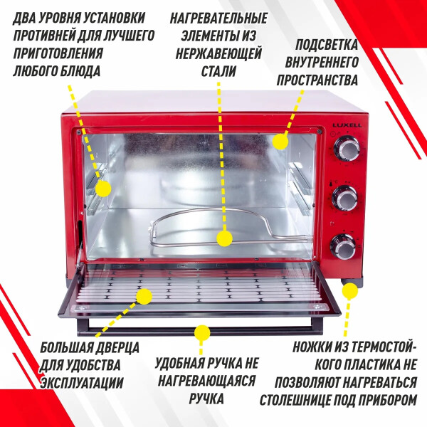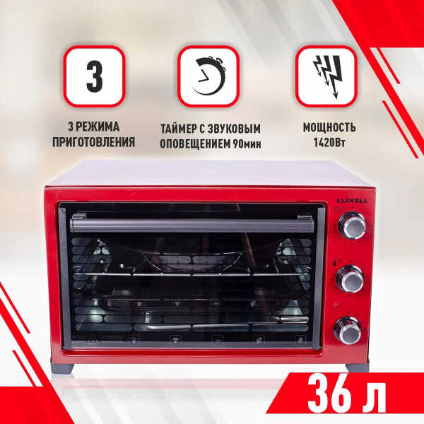 Продукция Luxell - это недорогая и качественная техника для дома. Электрическая мини-печь Luxell MO-36BL (черного цвета), MO-36W (белого цвета), MO-36B (бежевого цвета) и MO-36RD (красного цвета) порадуют вас своим простым и понятным управлением. Внутренняя поверхность печи легко очищается, что позволит легко поддерживать ее в чистоте. Есть три режима приготовления, которые позволят приготовить блюда с разной степенью прожарки на ваш вкус. Что важно, вся выпускаемая продукция проходит предварительное тестирование, поэтому порадует своим качеством российских потребителей.